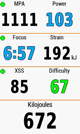 Okay – so you recall from the earlier post that the Xert Adaptive Training Advisor wanted 83 XSS points and an Xert FOCUS of 21:17.