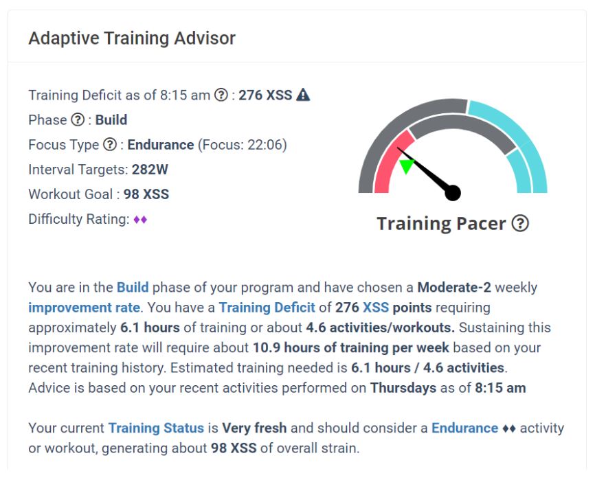 Xert Adaptive Training Advisor, XSS and FOCUS Recommendations